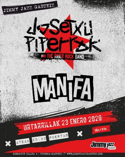 La leyenda del punk-rock navarro, Josetxu Piperrak, el carismático líder y vocalista de la mítica banda Piperrak, llega al Jimmy Jazz Night Club de Vitoria-Gasteiz, Álava, el 23 de enero de 2026. Este concierto es una cita obligada para todos aquellos que vibran con el punk más auténtico y reivindicativo, una noche para corear himnos y sentir la energía inconfundible de uno de los iconos más importantes de la escena española.