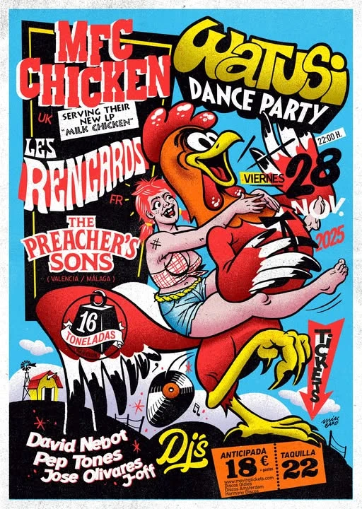 Prepárate para una explosión de energía y auténtico sonido revivalista, porque MFC Chicken aterriza en Valencia para ofrecer una noche inolvidable. Esta banda, reconocida por su garage rock potente y su contagioso rhythm and blues, promete un espectáculo que te hará vibrar desde el primer acorde. Si eres amante de la música con alma, raíces y un directo arrollador, esta es tu cita.