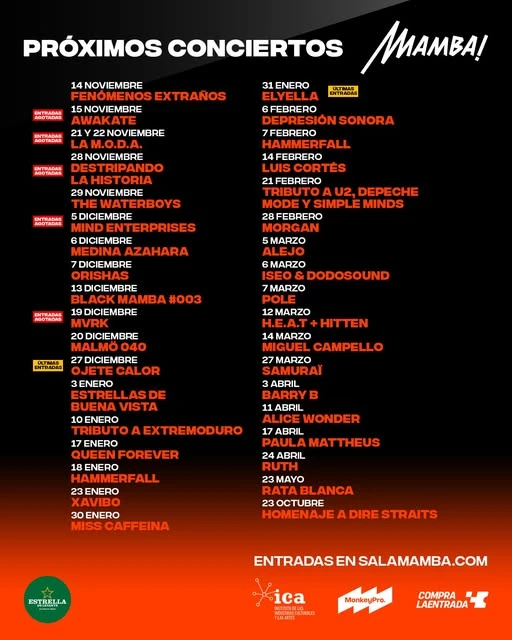 La Sala Mamba!, con su ambiente vibrante y su reputación de ser un punto de encuentro para los amantes de los ritmos más calientes, es el escenario perfecto para acoger la explosión sonora de Mamba Groove. Este recinto de Madrid se caracteriza por su diseño moderno, su excelente acústica y su sistema de sonido que permite que cada línea de bajo y cada golpe de percusión resuenen con una claridad impresionante. Es el lugar ideal para dejarse llevar por el funk y el soul más contagioso en la capital, provincia de Madrid.