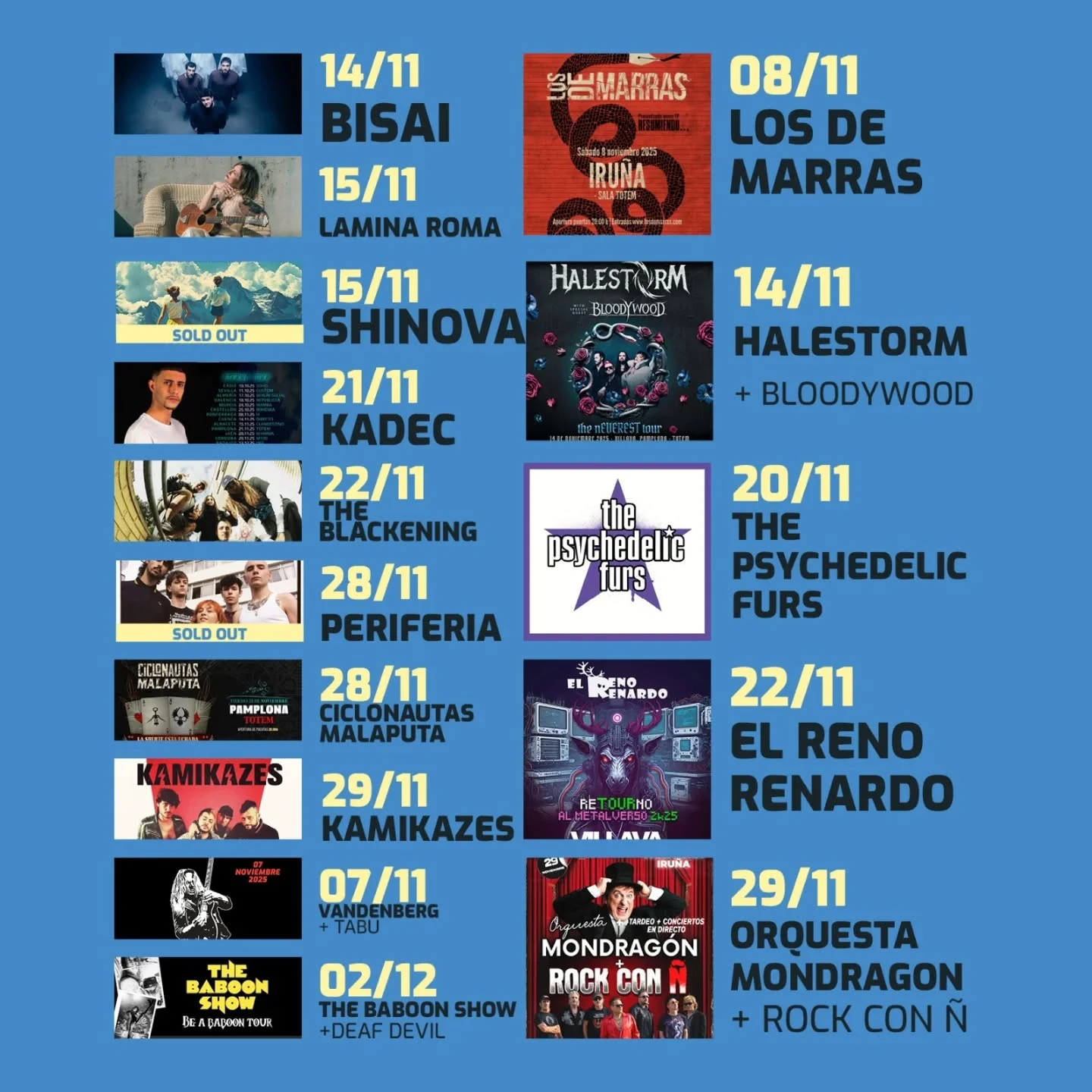 Prepárense para una descarga de pura energía y autenticidad rockera porque Totem Collective, la banda que personifica la esencia de la mítica Sala TOTEM Aretoa, llega a Pamplona este 29 de noviembre de 2025. Con una propuesta que explora las raíces del rock alternativo, infundiendo sus composiciones con poderosas influencias post-punk y garage, este concierto promete ser una experiencia visceral e inolvidable. Si eres un verdadero amante del rock en su estado más crudo y enérgico, esta es una cita que no puedes perderte en la vibrante capital navarra.
